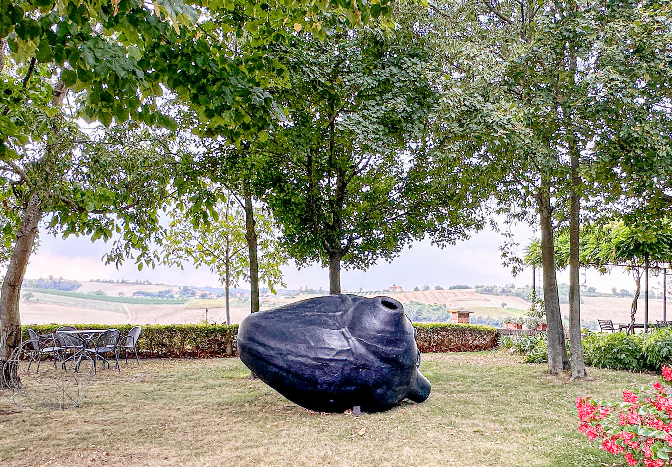 Un cuore nero, come l’«atrabile» che l’antica medicina ippocratica attribuiva ai melanconici perché, spiega l’artista, «il nero esiste prima e dopo la luce, prima e dopo la materia, prima e dopo il tempo. Il nero è l’opposto della superficie. Il nero è dove niente si riflette ma dove tutto si eclissa. Il nero è più denso di tutte le verità. Il nero è protesta senza bandiere».