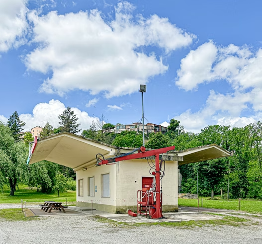 Prospiciente al cancello di ingresso si trova il piccolo edificio del Peso, incastonato in un particolarissimo scorcio tra fronde lussureggianti e le vestigia della chiesa di San Giovanni.