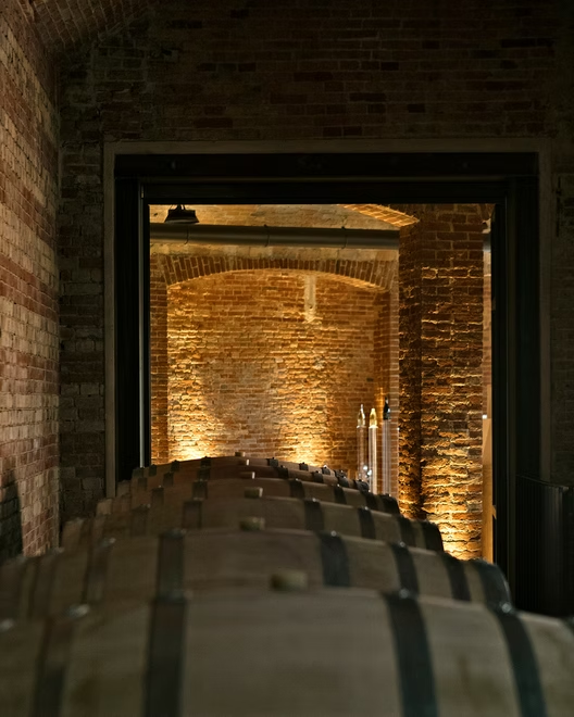Dai locali di una storica villa, la cantina di produzione si estende in sotterranea per tutta la lunghezza della casa. Una struttura nascosta di mille metri quadrati progettata con il preciso intento di preservare la natura del luogo originario.