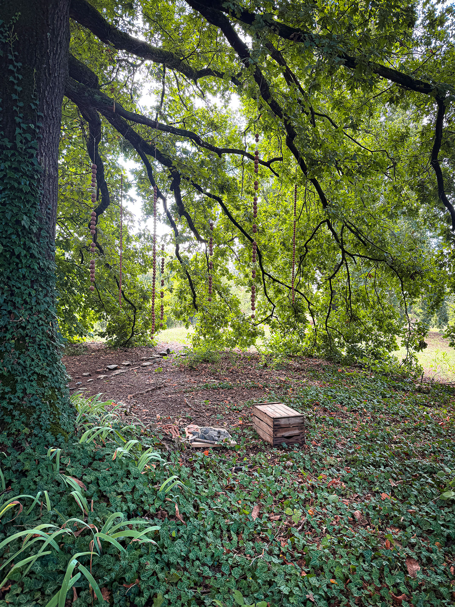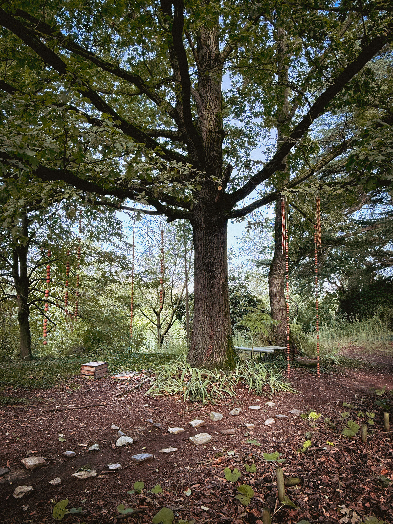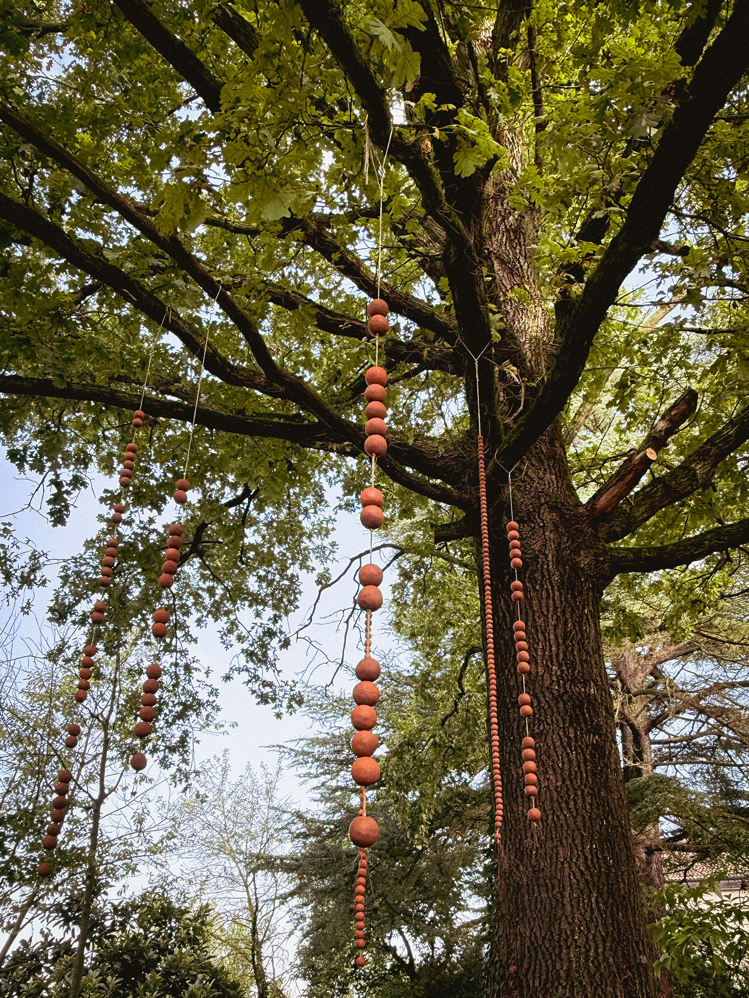 Realizzata appositamente per il contesto naturale che la ospita, l’installazione di Giulia Forgione prende la forma di quelli che lei poeticamente definisce esercizi spirituali in forma sferica.