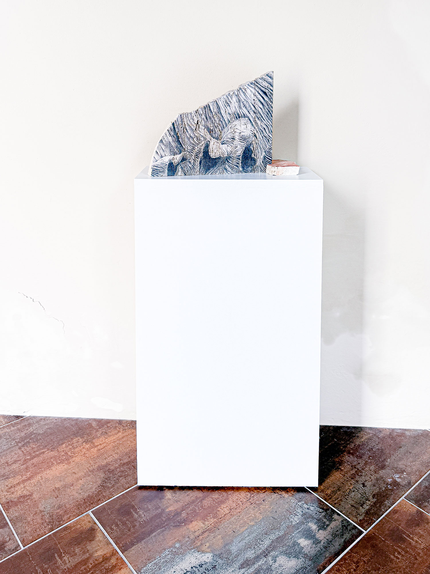 Negli ultimi anni la ricerca artistica di Riccardo Dapino si è concentrata in particolar modo sul disegno con l’utilizzo di diversi strumenti come la grafite, i pigmenti, i pastelli e le matite colorate. Ha iniziato a lavorare prima su fogli di carta di piccole dimensioni, successivamente espandendo il segno su grandi formati fino a sperimentare superfici di pietre come ad esempio il marmo e il travertino. I soggetti, provenienti dal mondo naturale sono ingranditi, trasfigurati nel tentativo di offrire punti di vista inconsueti. L’osservatore è costretto a sfogliare, nell’atlante della propria memoria, immagini che lo aiutino a riconoscere ciò che sta guardando per poterlo comprendere. È un processo poetico, meditativo e di dialogo che l’artista cerca di instaurare, attraverso il suo lavoro, con il pubblico.