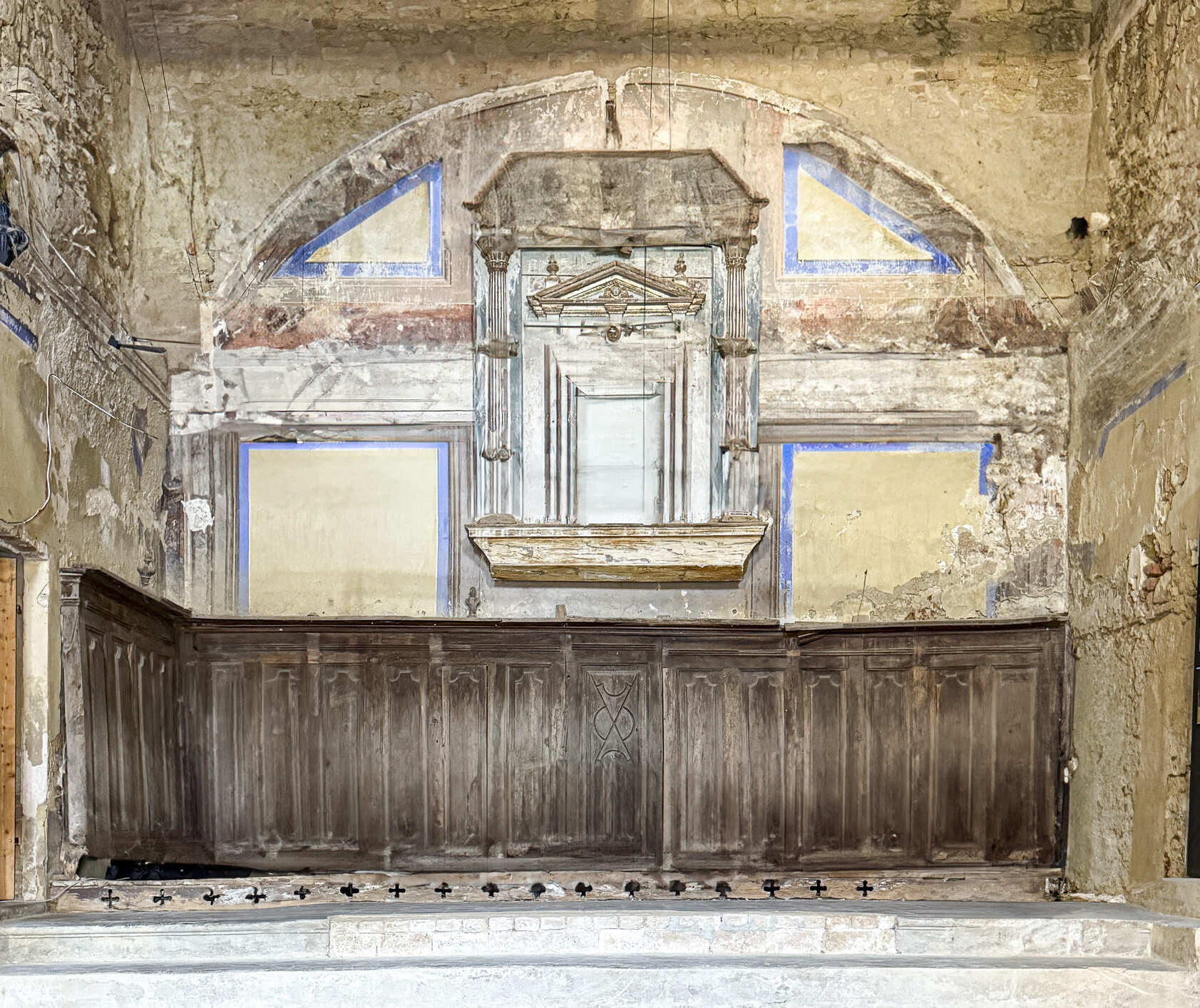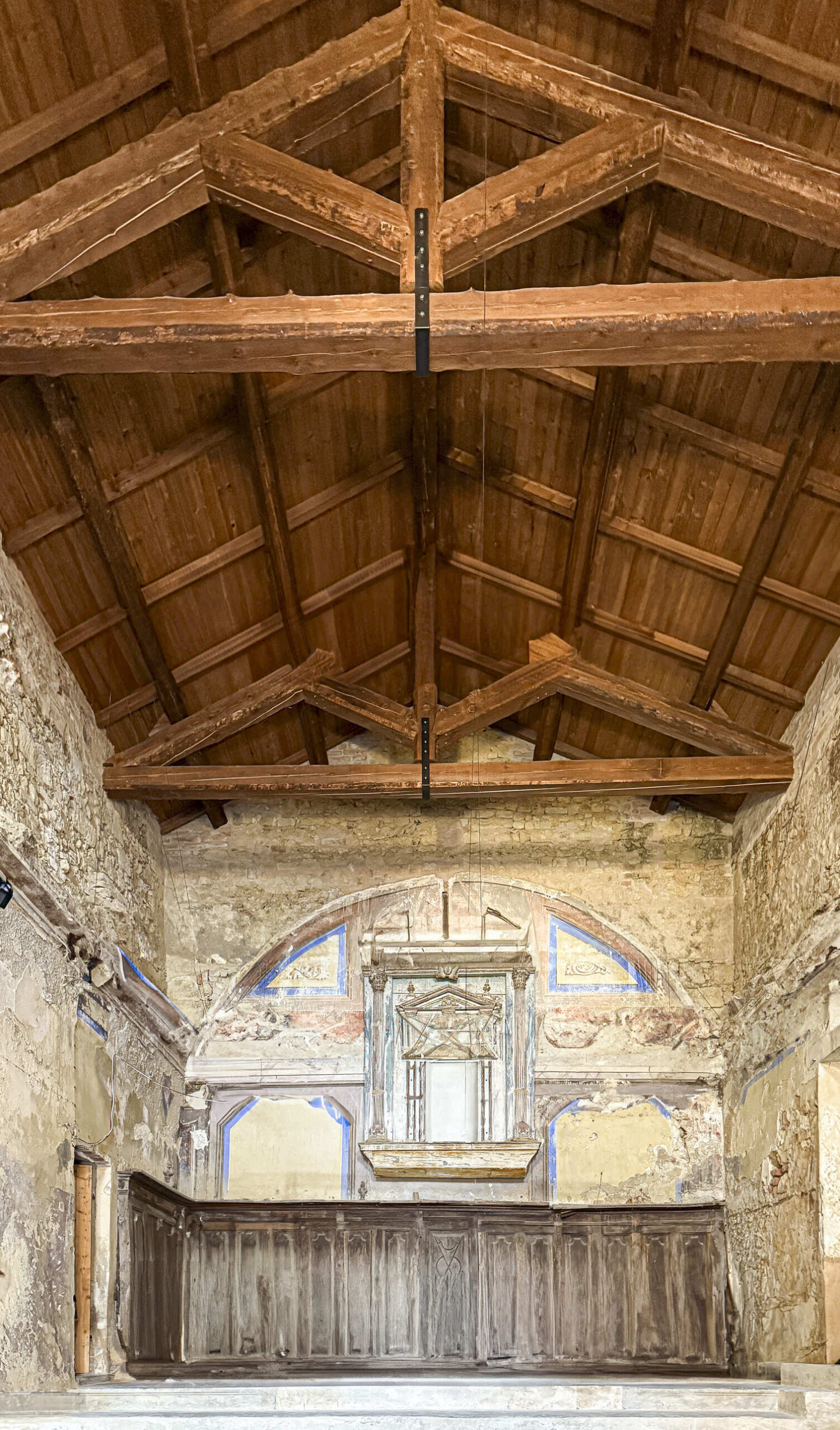 L’interno della Chiesa, restaurata nel 1964, era voltato a botte, con un piccolo altare barocco, il coro e il soppalco ligneo dell’organo. Sconsacrata nel 1977, venne utilizzata negli anni ‘80 come aula per gli stage estivi durante il festival Vignaledanza. Il crollo di parte della volta nel 2011 segnò un periodo di progressivo degrado degli interni. Solo recentemente è stata oggetto di interventi di consolidamento strutturale e copertura che ne permettono oggi l’apertura al pubblico e l’utilizzo per eventi culturali.
