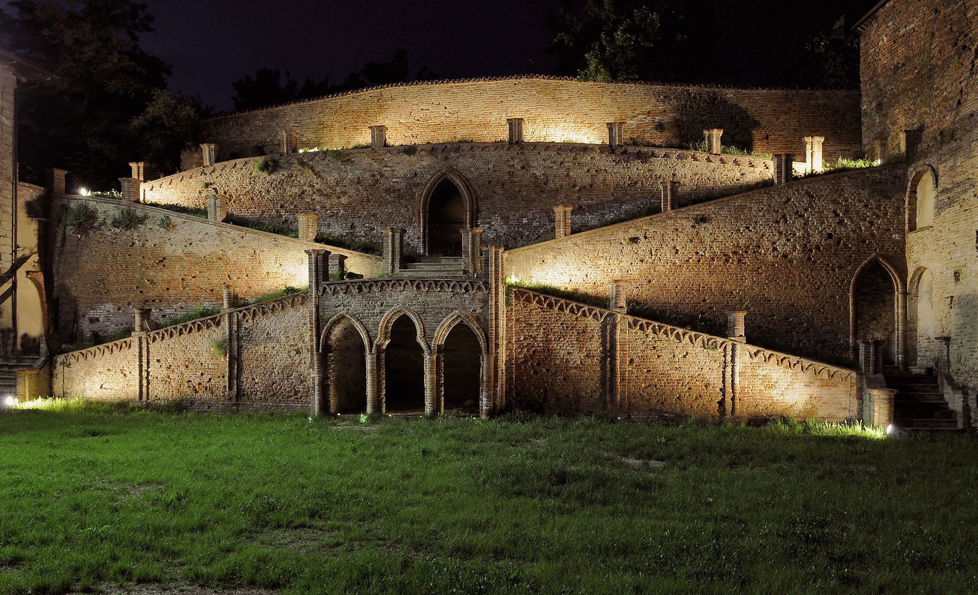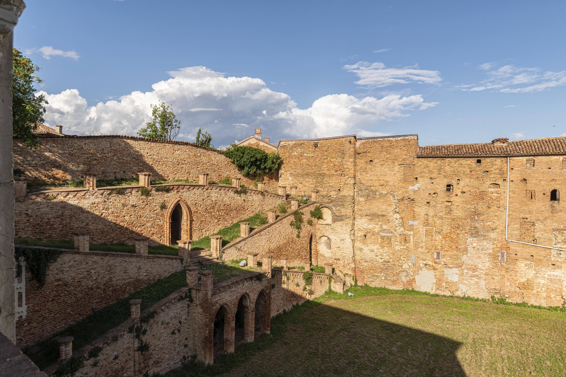 L’ex Asilo Regina Elena è un tipico edificio della seconda metà dell’Ottocento, collocato in posizione abbastanza centrale e favorevole, poiché si affaccia direttamente sulla via al Castello: l’ingresso è rivolto interamente a sud e riceve quindi un’ottima illuminazione per tutta la giornata, inoltre la grande presenza di vegetazione e di giardini adiacenti ne fanno un luogo silenzioso e anche riservato. L’edificio nel suo complesso ha una forma a “C” e racchiude al suo interno un cortiletto ora tenuto a verde, mentre sul lato destro dell’immobile si trova un giardino molto ampio con una struttura in muratura particolarmente suggestiva che crea un gioco di rampe e di terrazze che permettevano presumibilmente di ammirare dall’alto il giardino sottostante nonché di raggiungere uno spazio verde superiore.