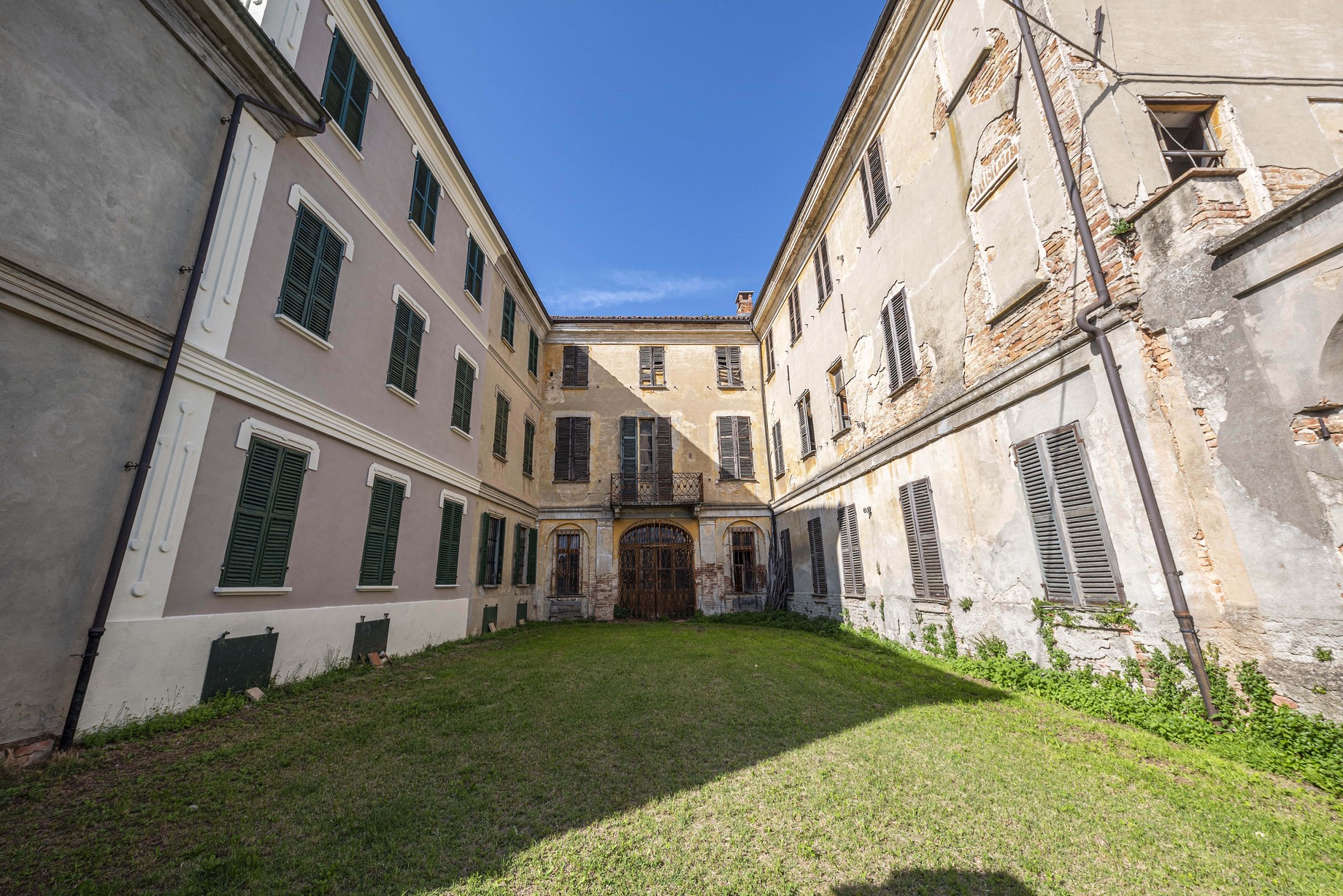 La proprietà dell’Asilo consiste però soltanto in un’ala dell’immobile e ha quindi una forma a “L”: il lato lungo è rivolto sul giardino, mentre l’ingresso principale è collocato sul lato corto che si affaccia sul cortile interno.